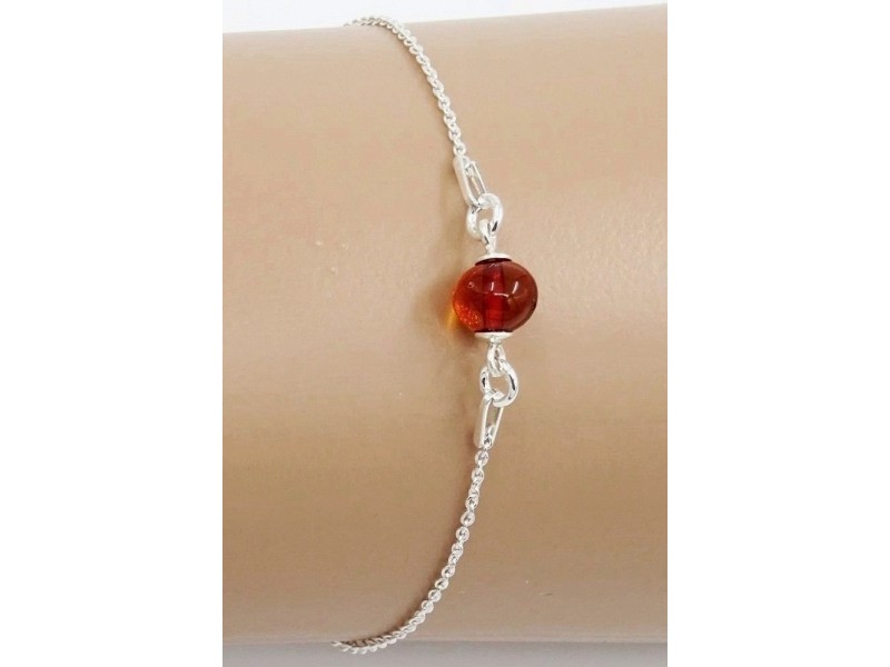 Серебряный браслет с янтарем 16см 1г Cognac no24